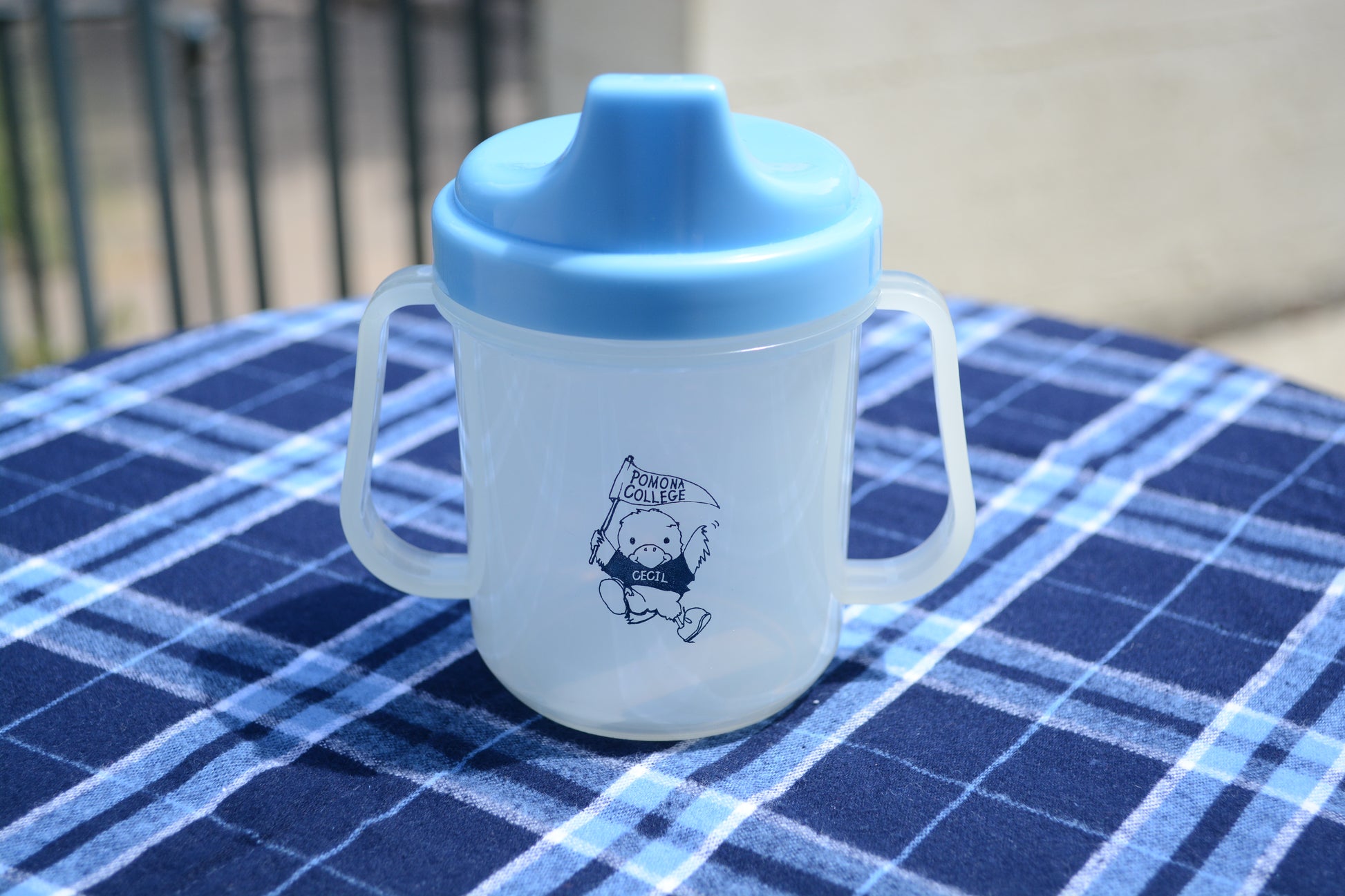 This adorable baby cup features a no-spill lid and a fun baby Cecil on the side!